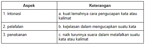 Pasangan yang tepat antara aspek penting saat membacakan puisi dan keterangannya adalah ....