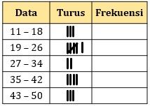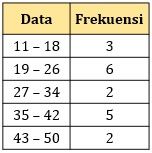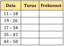 Data di atas akan dimasukkan ke tabel distribusi frekeunsi dengan banyak kelas 5. Tabel yang tepat untuk data di atas adalah ….