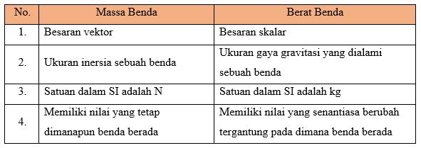 Perhatikan beberapa pernyataan tentang massa dan berat benda berikut ini.