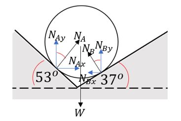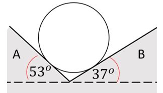 Besar gaya normal yang diberikan oleh dinding A dan B pada bola jika massa bola 2 kg adalah ….