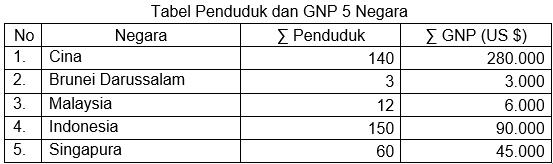 Berdasarkan data di atas, hitung pendapatan perkapita masing-masing negara!