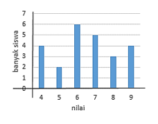 Data di atas adalah hasil nilai ulangan matematika kelas IV A, bentuk diagram batang yang sesuai dengan data tersebut adalah ….