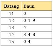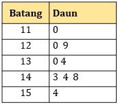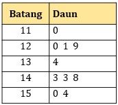 Diagram batang daun yang tepat untuk data di atas adalah ….