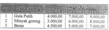 Apabila dihitung dengan metode indeks harga agragatif sederhana (tahun dasar 2009), maka tingkat inflasi tahun 2010 berdasarkan tingkat keparahannya adalah ....