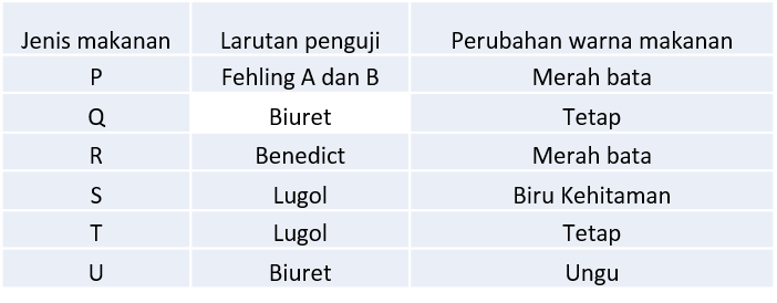 Jenis makanan yang mengandung glukosa adalah P dan R