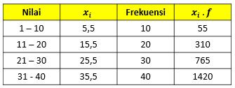 Nilai rata – rata dari data tersebut adalah…