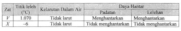 Jenis ikatan yang terdapat pada zat V dan X secara berturut-turut adalah ...