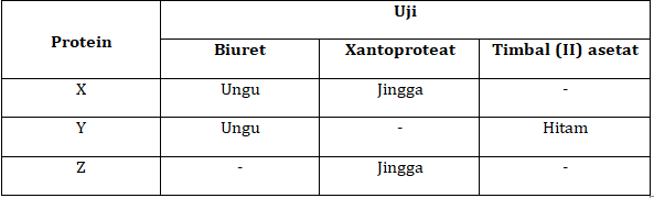 Protein Y mengandung salah satu asam amino berikut, yaitu ....