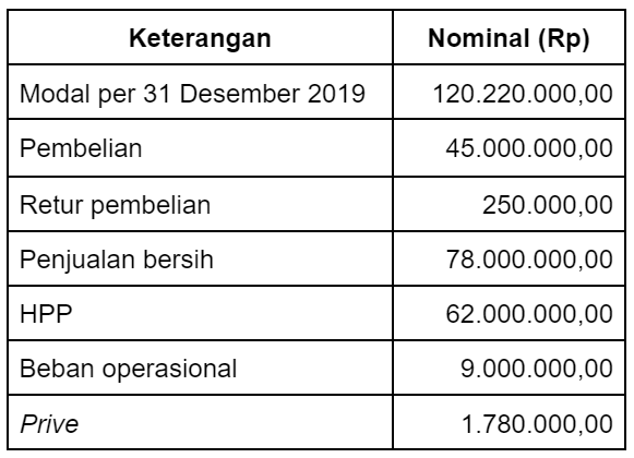 Perhatikan data keuangan PD Ruang Anugerah berikut ini!