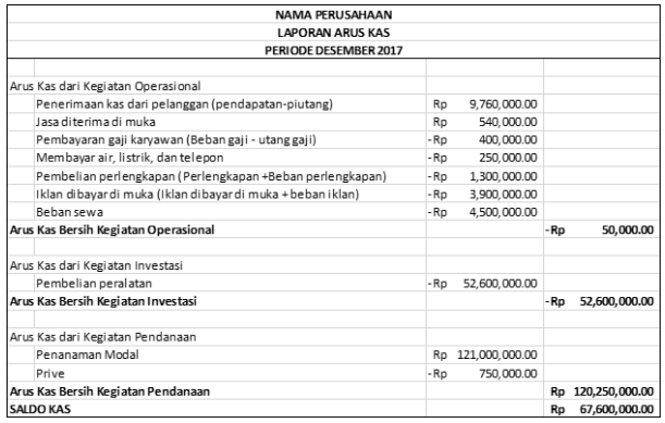 penerimaan berasal dari pendapatan usaha, jasa diterima di muka, dan modal awal