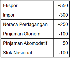 defisit sebesar Rp350 triliun, sebagai hasil saldo neraca perdagangan dikurangi pinjaman otonom