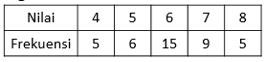 Nilai berturut-turut dari data di atas adalah ....