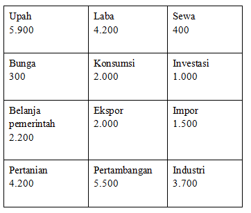 Perhatikan data pendapatan nasional (dalam miliar rupiah)