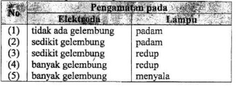 Pasangan senyawa yang merupakan larutan elektrolit kuat dan non elektrolit berturut-turut ditunjukkan oleh larutan nomor ...
