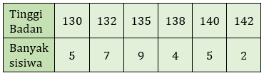 Perhatikan data tinggi badan (cm) siswa SMP Rogu berikut ini!