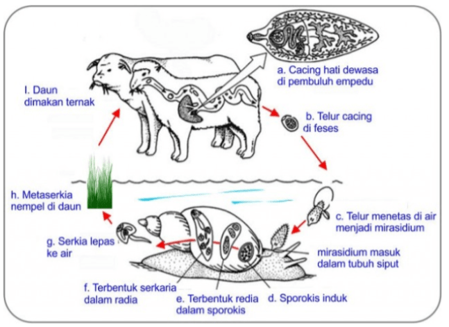 Perhatikan daur hidup Fasciola hepatica berikut!