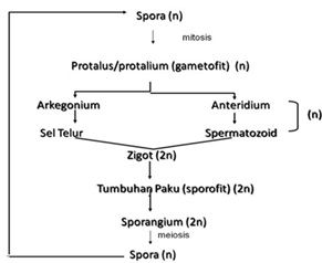 Perhatikan daur metagenesis tumbuhan Pteridophyta berikut!