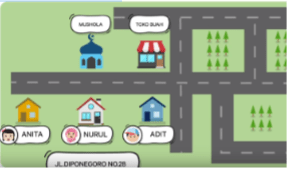 Bangunan … terletak tepat di depan rumah Nurul.