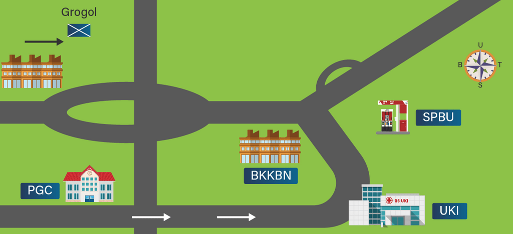 di sebelah timur laut RS UKI