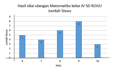 Dari diagram batang di atas, jumlah siswa yang memperoleh nilai 7 dan 8 adalah….