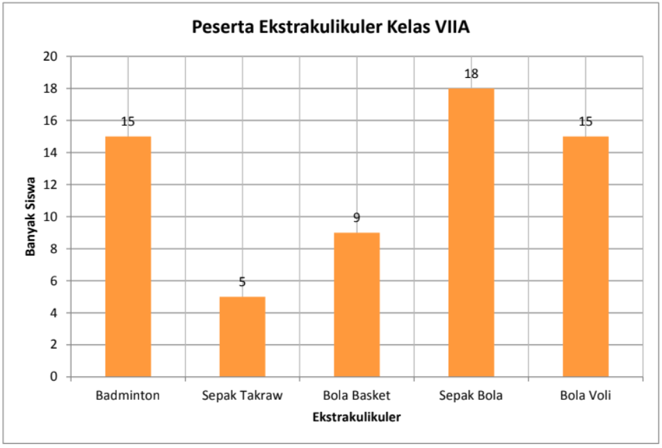 Data di atas adalah interpretasi data pengikut ekstrakurikuler olahraga suatu sekolah. Tentukan.