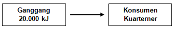 Jika 90% energi hilang saat berlangsung perpindahan energi dari trofik satu ke trofik selanjutnya, berapa energi yang diterima oleh konsumen kuarterner?