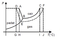 Pada diagram PT fase H2O di atas, yang merupakan daerah perubahan titik didih adalah....