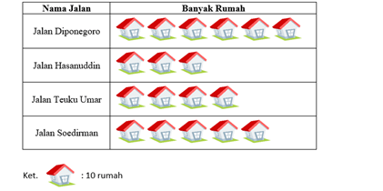 Selisih banyaknya rumah di jalan Teuku Umar dan Jalan Soedirman adalah ...