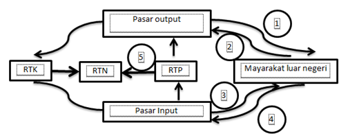 Perhatikan diagram interaksi empat pelaku kegiatan ekonomi berikut ini!