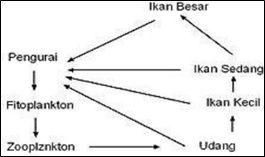 Berdasarkan diagram di atas, peran dari ikan sedang, udang, dan fitoplankton secara berturut-turut adalah ....