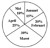 Diagram di atas menyatakan banyaknya buku yang dibaca Deni dalam 5 bulan. Maka sudut pusat untuk data bulan Mei adalah ...