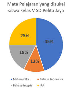 Perhatikan diagram lingkaran berikut ini. Jumlah siswa kelas V SD Pelita Jaya adalah 40 siswa.