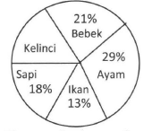 Diagram lingkaran di atas menunjukkan data jenis hewan peliharaan dari penduduk suatu desa. Jika jumlah penduduk desa itu adalah 200