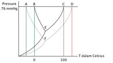 Jika suatu zat dilarutkan dalam pelarut maka titik beku pelarutnya ditunjukkan pada huruf....