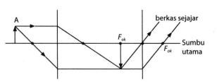 Benda A diletakkan 3 cm dari lensa objektif. Jika jarak fokus lensa objektif dan okuler masing-masing 2 cm dan 6 cm (Sn = 30 cm), maka perbesaran sudut bayangan yang terjadi adalah ....