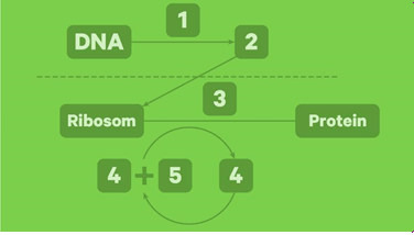 Peristiwa transkripsi, translasi dan RNAt secara berurutan ditunjukan oleh nomor…
