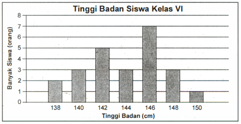 Perhatikan diagram tinggi badan siswa kelas VI berikut ini!