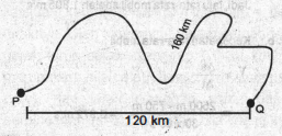 Kota P dan Q jika ditarik garis lurus terpisah sejauh 120 km. Sebuah mobil bergerak dari kota P menuju Q melalui satu-satunya jalan penghubung dan diperoleh data pada speedometer sebesar 160 km. Waktu tempuh dari P ke Q selama 2 jam. Hitung kelajuan rata-rata dan kecepatan rata-rata mobil tersebut!