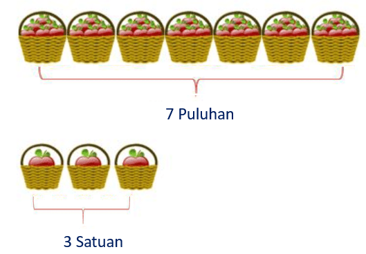 Jika satu keranjang besar berisi 10 apel, dan keranjang kecil berisi 1 apel, maka apel … lebih sedikit dari apel … .
