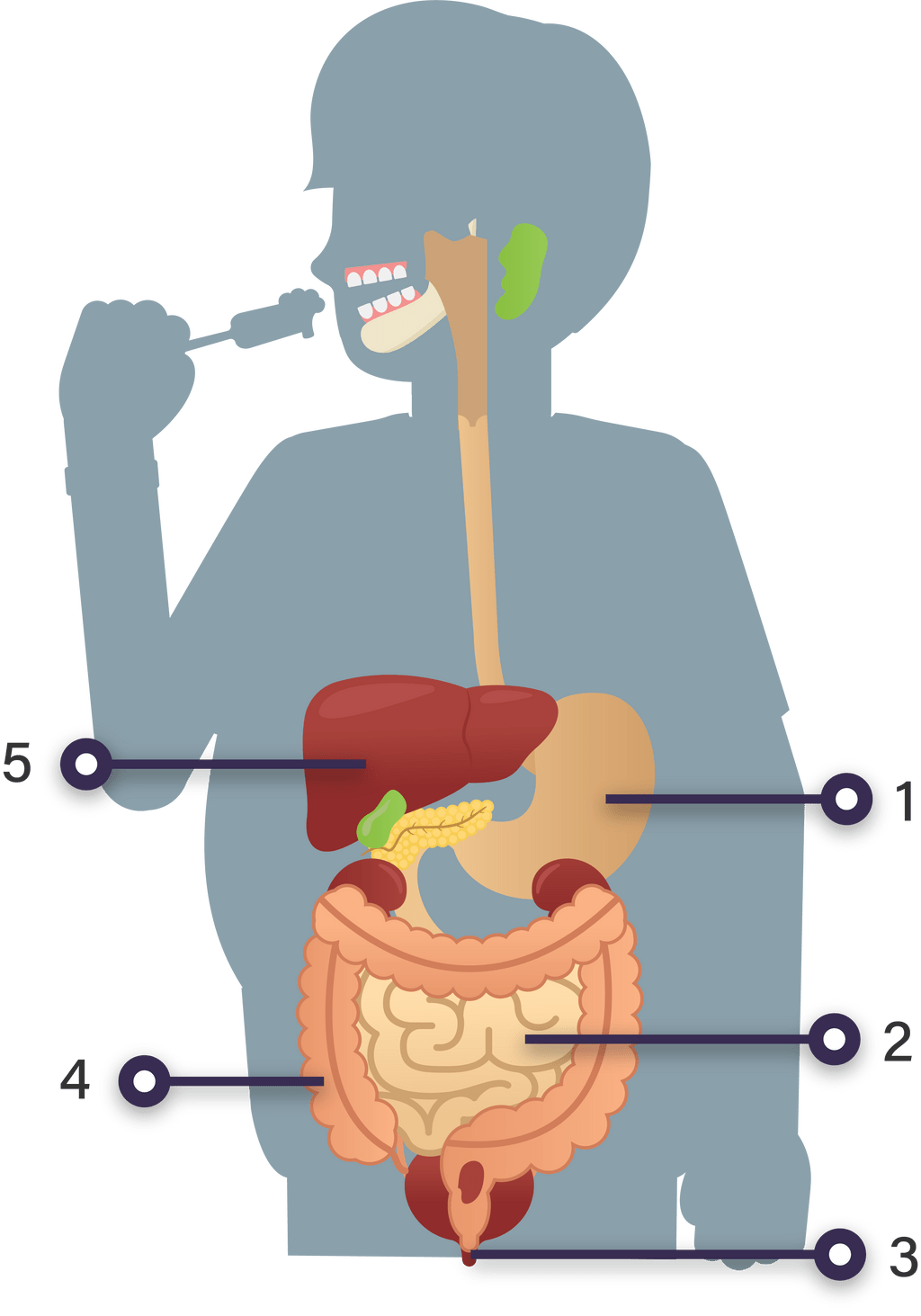 Perhatikan gambar bagian-bagian penyusun organ pencernaan manusia sebagai berikut!