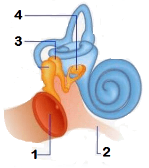 Bagian telinga yang berfungsi menerima getaran suara dari luar kemudian di teruskan ke tulang-tulang pendengaran di tunjukan oleh nomor ....