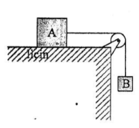 Balok A bermassa 30 kg yang diam di atas lantai licin dihubungkan dengan balok B bermassa 10 kg melalui sebuah katrol. Balok B mula-mula ditahan kemudian dilepaskan sehingga bergerak turun. Percepatan sistem adalah .......