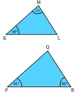 Diketahui segitiga KLM dan segitiga PQR sebangun. Jika maka nilai yang tepat adalah ....