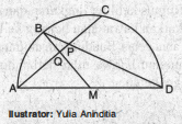 Misalkan dan adalah titik-titik pada lingkaran sehingga tegak lurus dan memotong di titik . Jika besar , tentukan besar dalam .