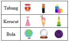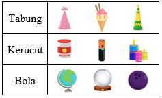 Berikut ini kelompok benda-benda tersebut sesuai bentuk dari bangun ruang sisi lengkung yang paling mendekati adalah ....
