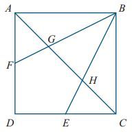 ABCD persegi dengan panjang sisi-sisinya adalah 2 cm. E adalah titik tengah CD dan F adalah titik tengah AD. Luas daerah EDFGH adalah (OSK SMP 2011)