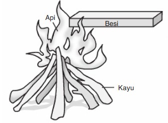 Ahmad memanaskan besi di atas api unggun. Apabila salah satu ujung besi dipanaskan seperti pada gambar, ujung yang lain akan menjadi panas. Perpindahan kalor pada besi terjadi secara ….
