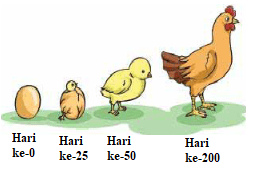 Andi sedang mengamati pertumbuhan ayam seperti gambar di atas. Laporan pengamatan yang tepat adalah ....