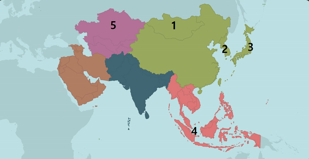 Angka yang menunjukkan letak negara maju di Benua Asia adalah ....