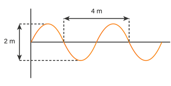 Apabila waktu yang diperlukan untuk menempuh 2 gelombang sebesar 2 s, maka amplitudo dan cepat rambat gelombang adalah ... .